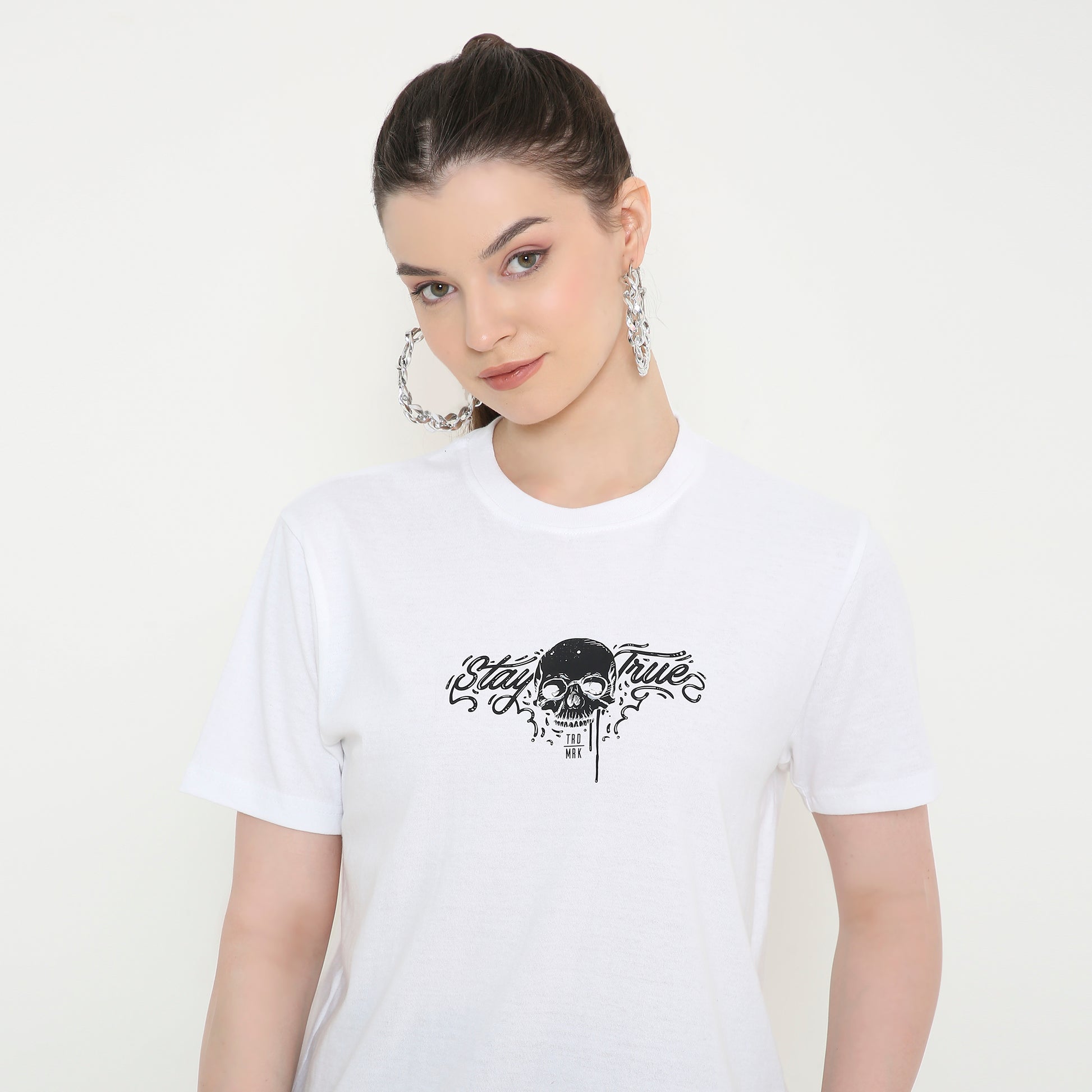 Stay effortlessly cool in this oversized tee featuring a bold "Stay True" graphic. Crafted from breathable polycotton and designed for a relaxed fit, it’s available in sizes XS to XL.