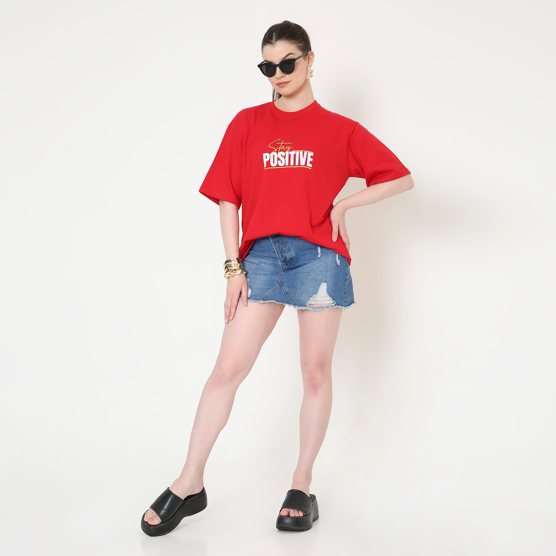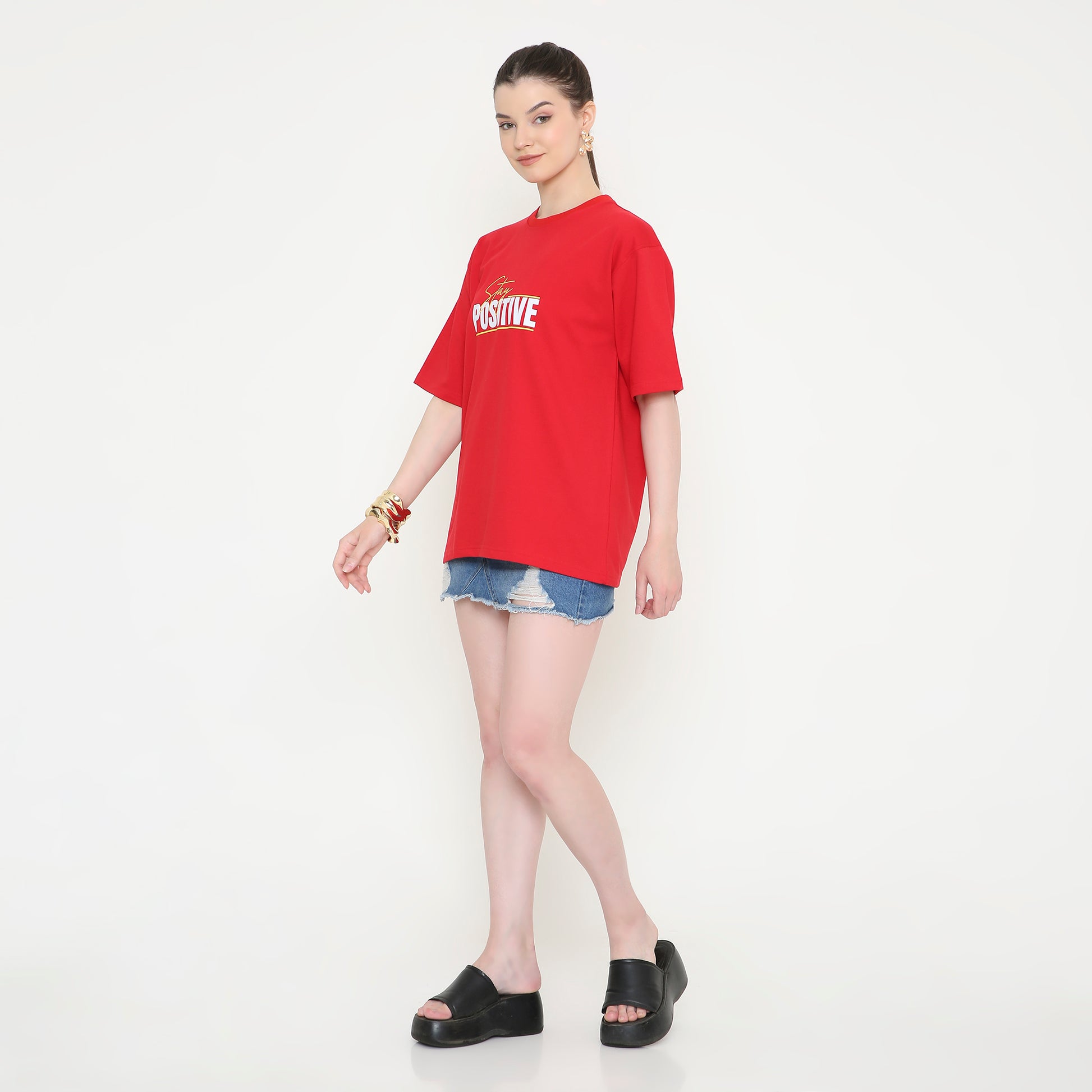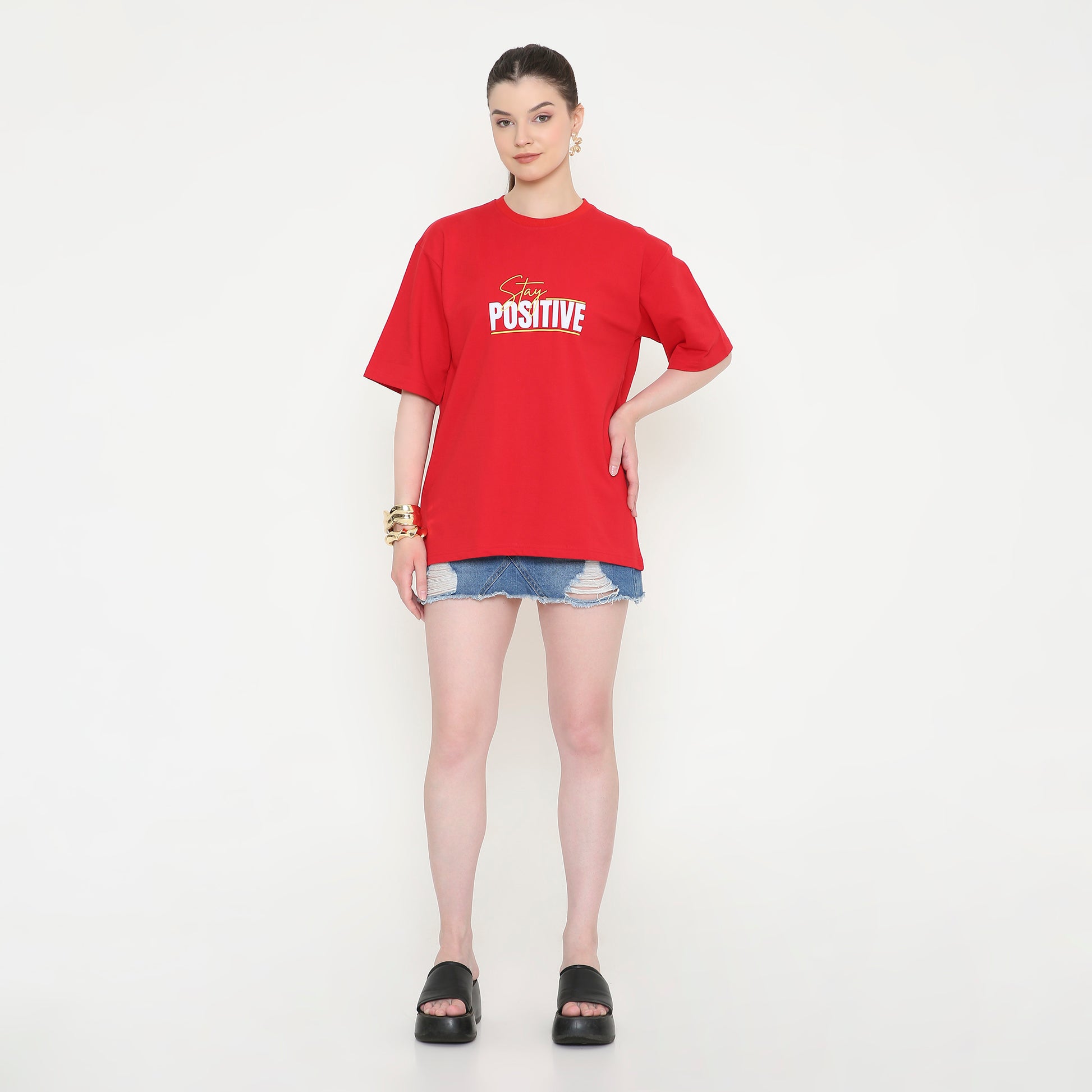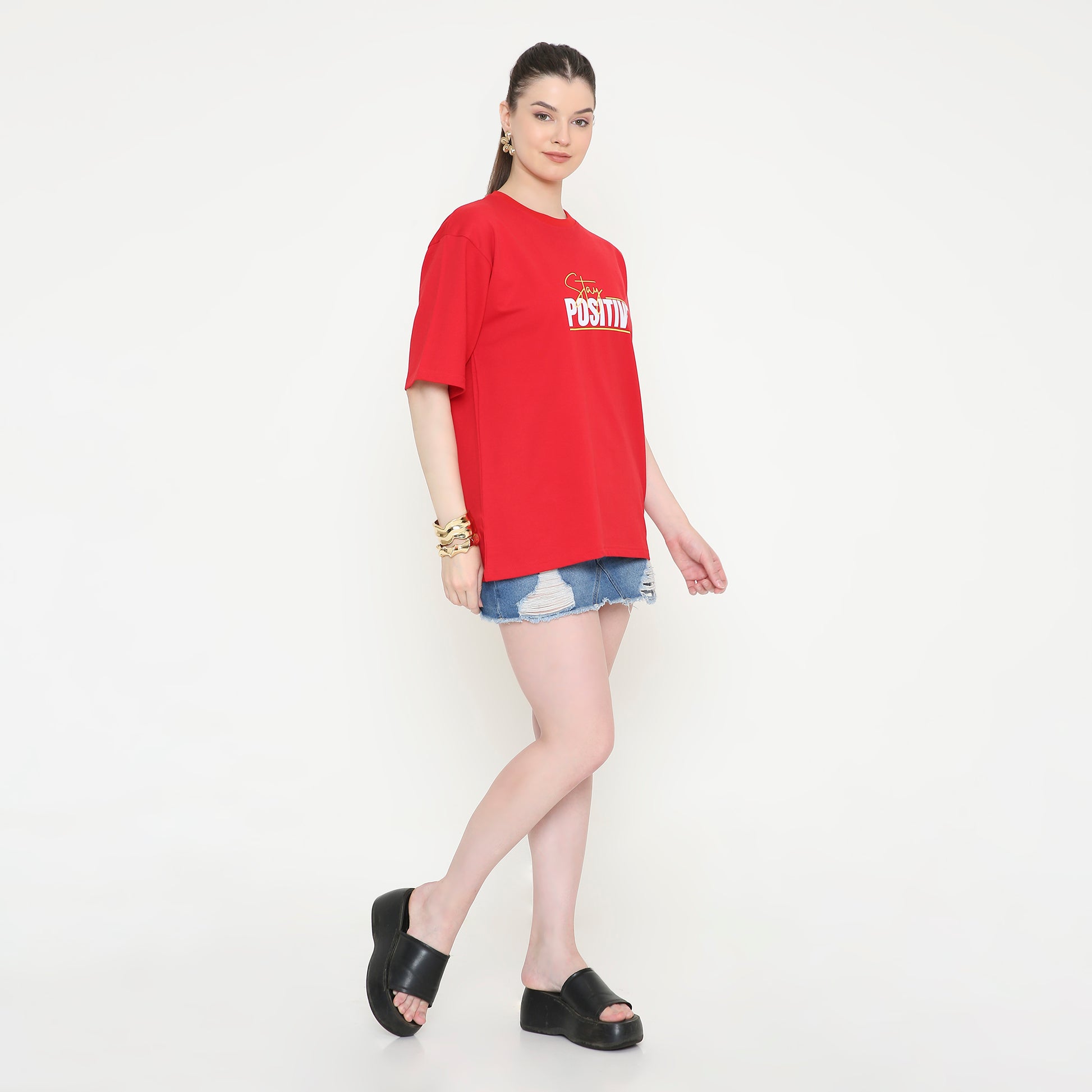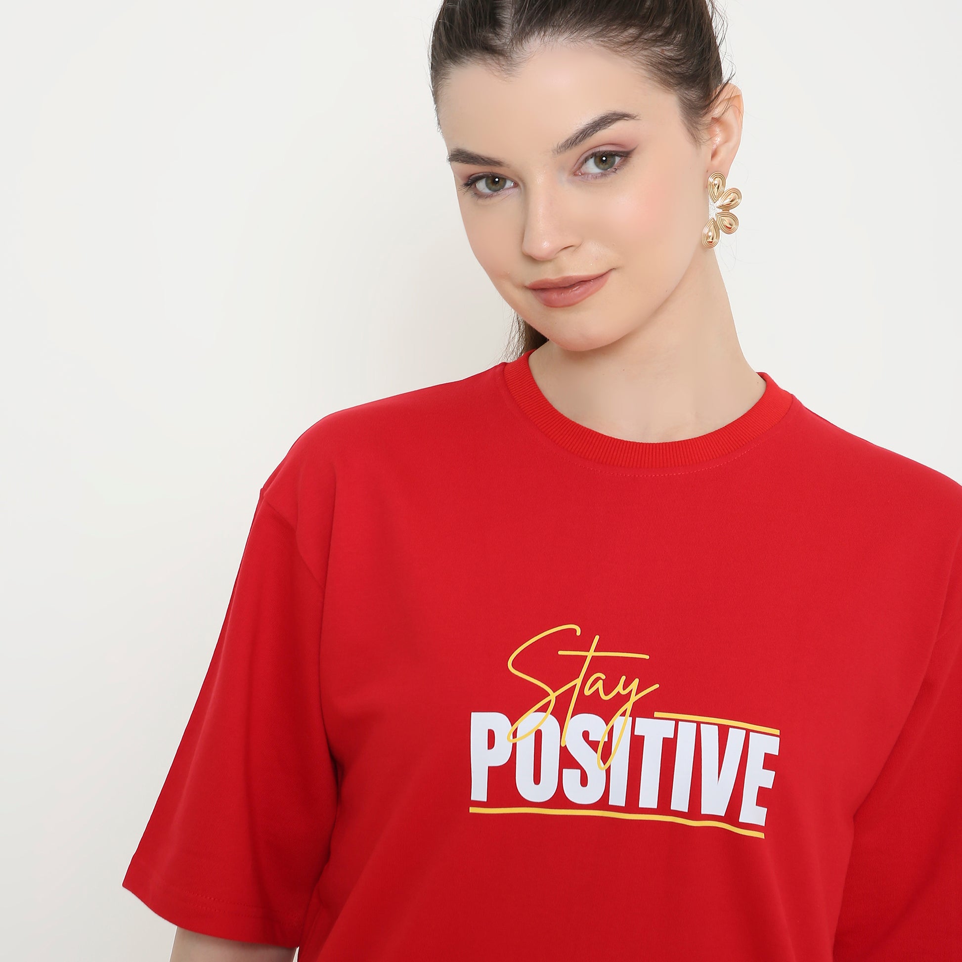 Radiate good vibes in this vibrant red oversized tee with a bold “Stay Positive” graphic. Made from soft, breathable polycotton and designed for a comfy relaxed fit, it’s available in sizes XS to XL.